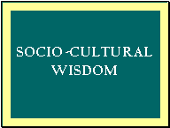 (We don't expect our dogs to know everything. Why should we expect human beings to figure everything out?) If you have questions or comments about one of these — or some other aspect of wisdom — I invite you to bring it up during the post-talk discussion. One final word about values before we move on. In my comments about values I’ve been referring to a person’s deep down, internalized, operational values. These are not necessarily the same as a person's professed values. The internalized values reveal themselves in behavior. The professed values may exist only in words. To understand what values are really in control, we can work back from behavior — our own behavior and that of other people. Pleasing to us or not, there it is. Let’s switch our attention now to socio-cultural wisdom. Societal institutions — corporations, political systems, economies, NGOs — are purposeful entities. They exist to perform certain functions and to behave in certain ways. And that behavior is directed by values. Those values are typically a combination of