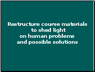 This is all very much to the good, and students in these programs clearly benefit. But could institutions of higher education do more? Nicholas Maxwell and a growing group of kindred-spirited academics are saying that they could. They could not only teach about societal problems, but whole institutions could engage in a deep, rigorous, multi-disciplinary exploration of what might be done about them. Ideas would arise from students, from faculty, or from groups of both working cooperatively. The most promising ideas would then be subjected to traditional scholarly scrutiny and criticism. The goal would be to reject unworkable ideas and, in Maxwell’s words, “discover those rare, complex, coordinated actions which permit everyone to benefit.”9 By doing this, institutions of higher education could go beyond being observers and teachers of what is going on, to become an effective force for change. So much for generalities. What specific steps could a college take to promote socio-cultural wisdom? Let me suggest a few possibilities: The best starter activity might be an open discussion among faculty and interested students about the core issues: Should we adopt a wisdom focus? And if so, How should we go about it? Programs that already explore current societal problems, might increase their emphasis on possible solutions and next steps worth taking. Where possible, course materials could be restructured in ways that help students understand the present human situation more clearly.