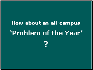 Earlier this year, in his introduction to the Faculty Day of Scholarship, President Duncan said: “We are the scholar teachers who must transcend the boundaries of our own specializations and move beyond the comforting domains of our own scholarly expertise.” Society’s problems are inherently multidisciplinary, and they need to be approached in a multidisciplinary way. Could these very problems perhaps be an organic vehicle for helping Rollins scholars to “transcend the boundaries?” What if the College selected a “Problem of the Year” for a year-long multi-disciplinary and transdisciplinary investigation? Possible topics might include: